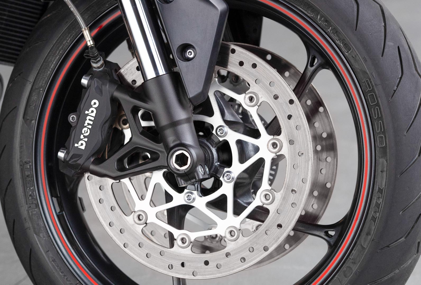 - Front brakes: 310mm floating discs w/ Brembo M4.32 4-piston monoblock calipers