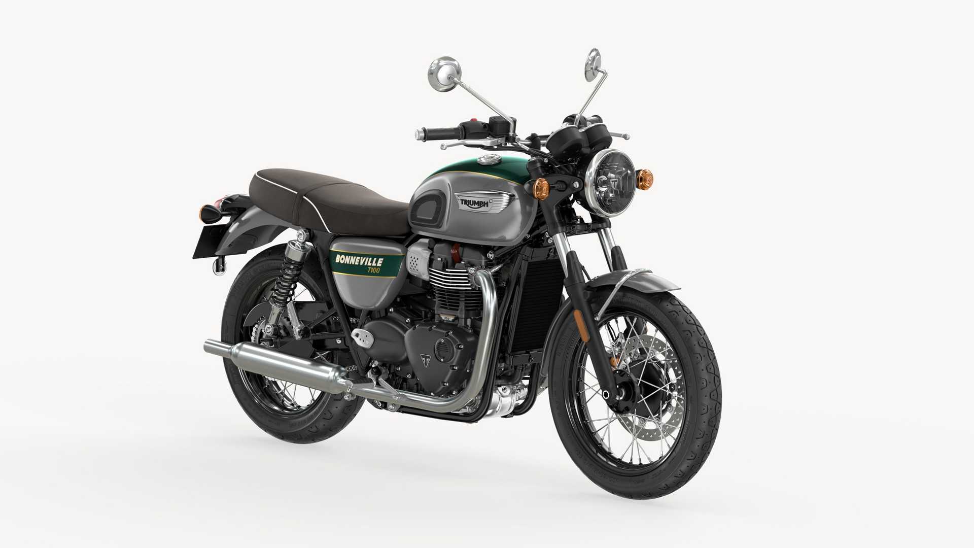 • Bonneville T100 Gold Line Edition: Silver Ice and Competition Green