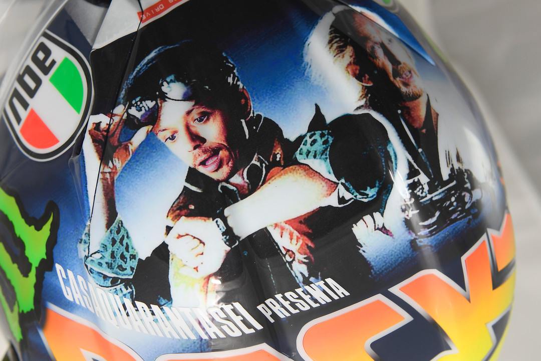 The brow includes the Italian shield of the AGV logo, a champion detail that has demonstrated Valentino through over 20 long stretches of his amazing vocation. Furthermore, there are motion picture references, obviously, also, for example, the protective cap’s correct board, including the date of Valentino’s last appearance in Misano, notwithstanding the present date.