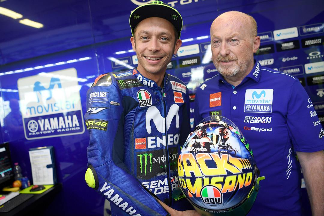 AGV and Valentino Rossi are praising the arrival to Misano of the nine-time World Champion with another realistic roused by the fine art for the renowned film, Back to the Future Part II. The characteristics of Valentino and Silvano Galbusera, his team boss since 2013, supplant those of Marty McFly and Doc. The twosome have been slung back to the circuit after 2017’s constrained nonattendance, when Rossi needed to relinquish days before the occasion.