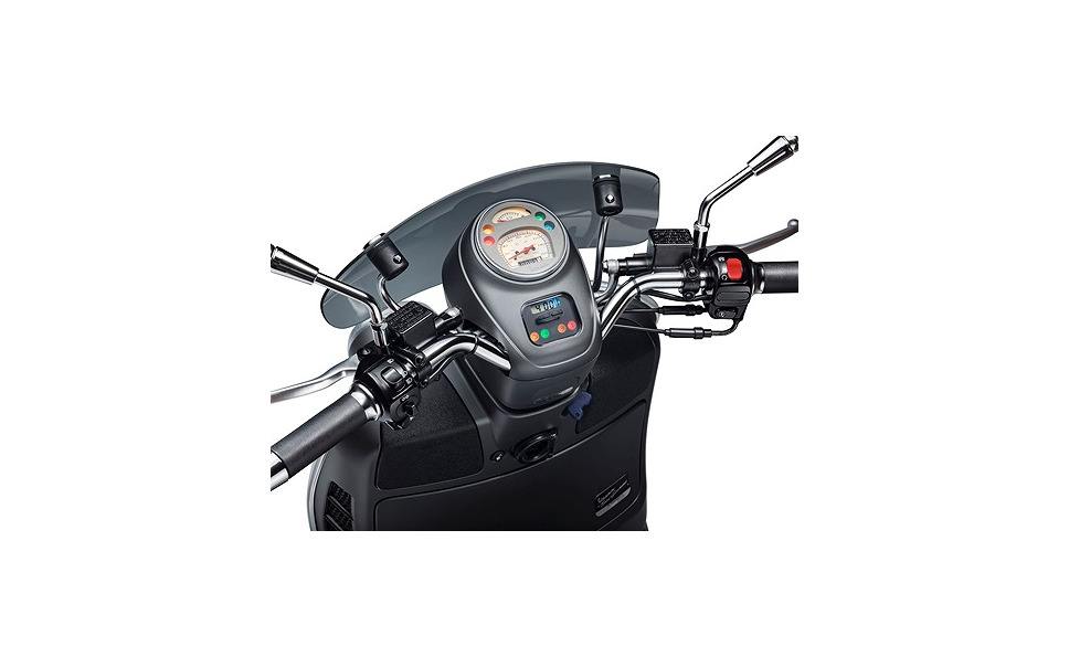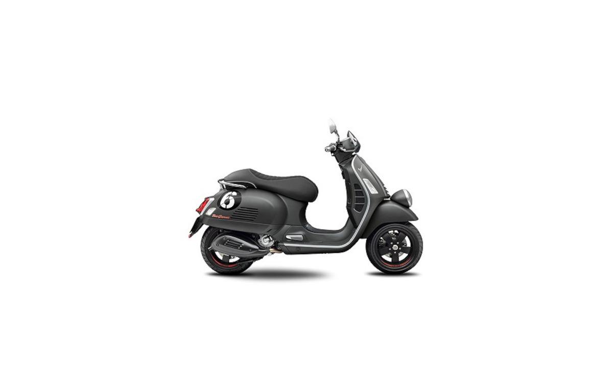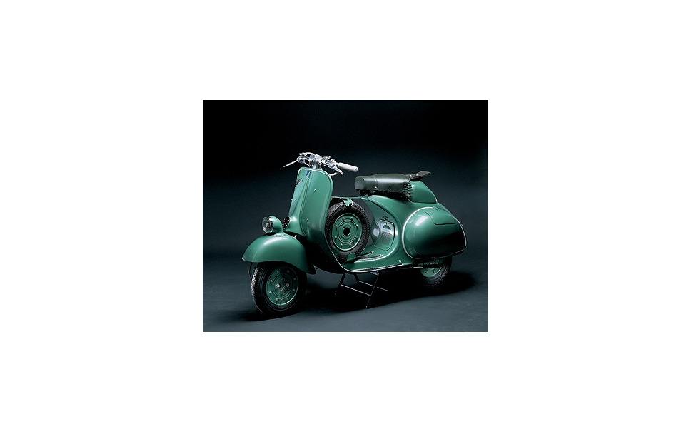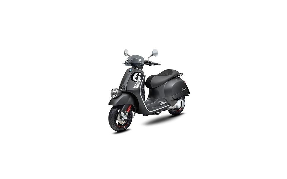 as a reprint of the racing model with many comfortable modifications. Vespa has placed the headlights on the front mudguard.