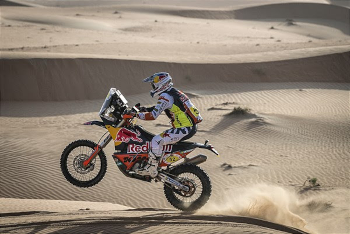 Totalling 327 kilometers, it was another day in the Abu Dhabi Desert Challenge dunes, with the stage featuring a physically demanding timed special of 293 kilometers. As a result of his runner-up finish on day two, Matthias Walkner set off second and soon found himself up near the front once again, assisting with opening the stage.