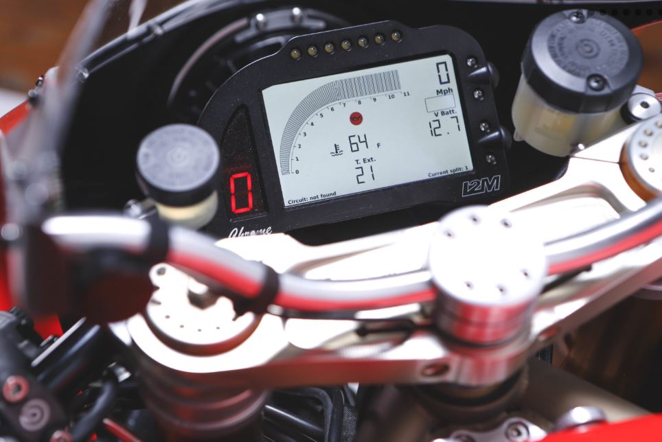 Electronics – WSM/Race Spec harness, traction control, clutchless quickshift, full interface dashboard with data acquisition system, Ducati ECU with WSM performance program