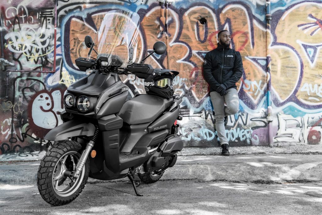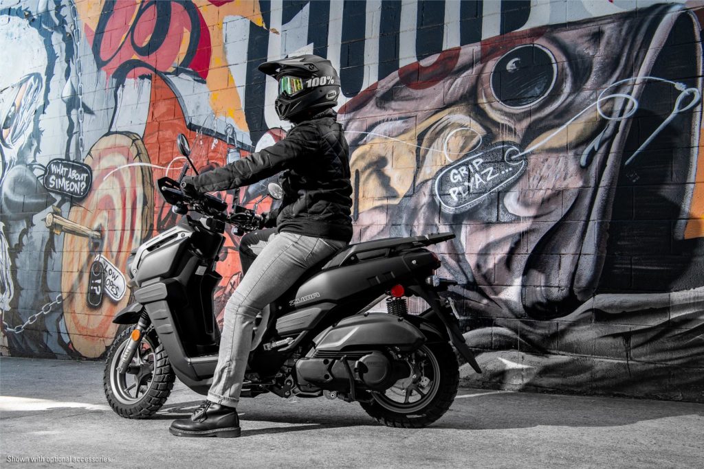 Beneath the new rugged styling, the Zuma 125 comes built around a strong steel frame with aggressive tread tires and tough suspension.Â