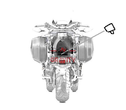 The rear radar helps detect the blind spots for the areas which the rider is not able to see.
