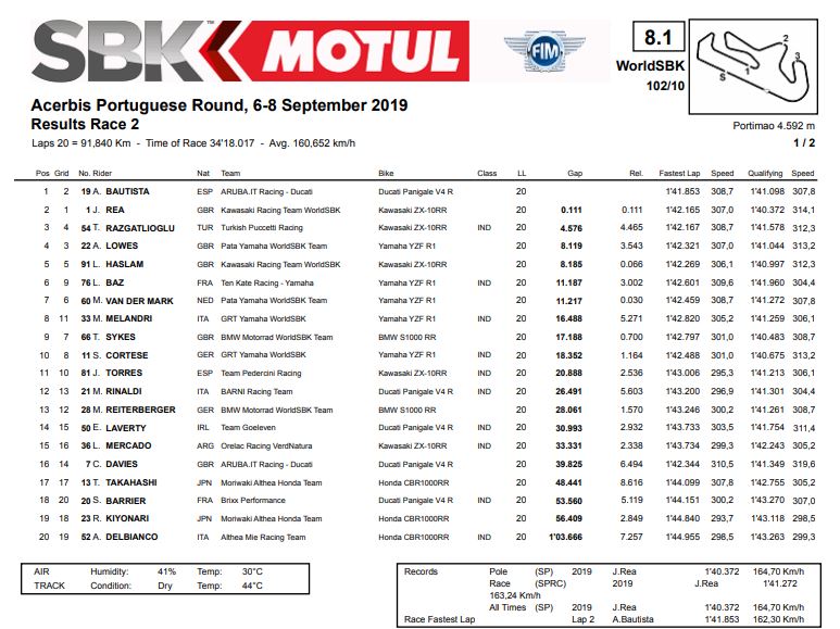 Overall a great race that saw a duel between Bautista and Rea for the first position.