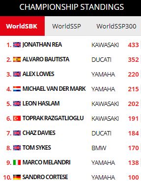 Tables have turned now with most unpredictable things where in Jonathan Rea has moved to top in table with 433 points which is 81 points more than Alvaro Bautista and Ducati as they stand second with 352 points.