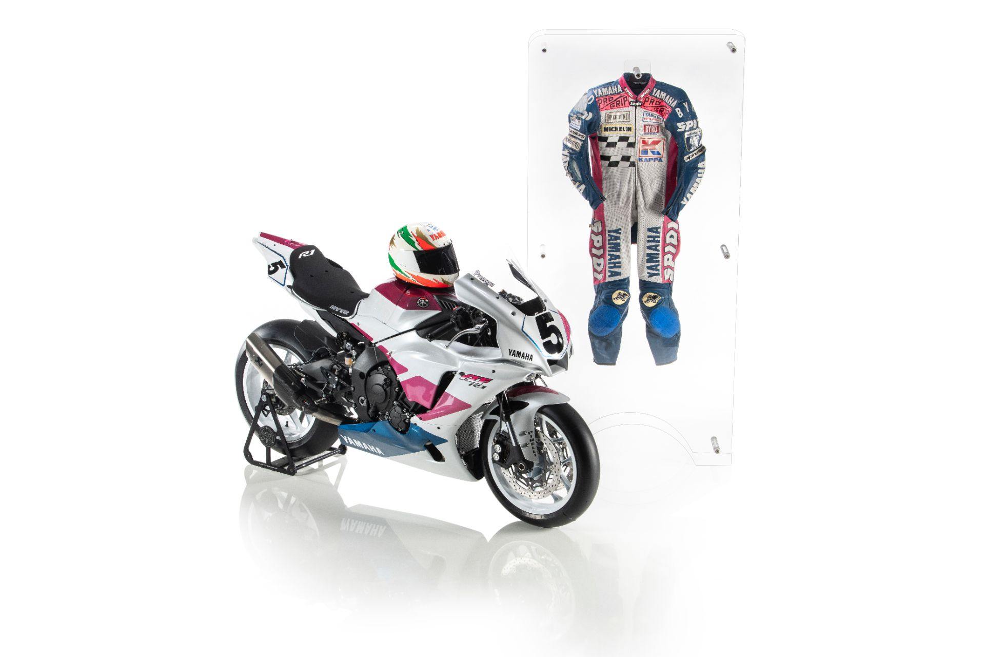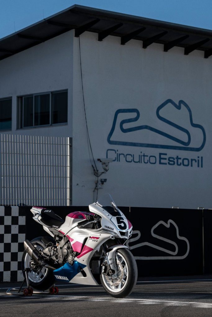 And pink colours of the #5 Yamaha YZF 750 SP. )n which Pirovano rode to victory at the Circuito Estoril in 1993.
