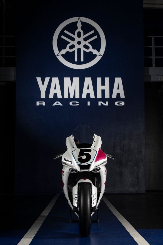 Based on 2020 Yamaha R1 the Piro replica was created by Yamaha Motor Europe. And is adorned with the famous white.