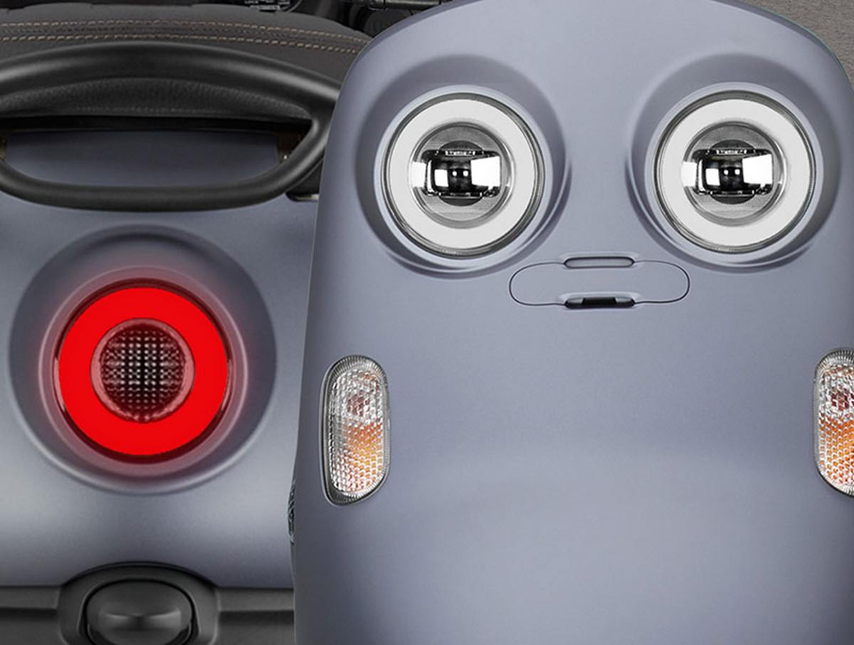 Aesthetically the scooter comes in retro shape with the front having two LED headlights, similar to a robot.