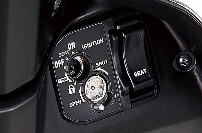 The refuelling port is located on the floor step, allowing quick refuelling without opening the seat. It comes equipped with a push-lock type fuel tank cap.