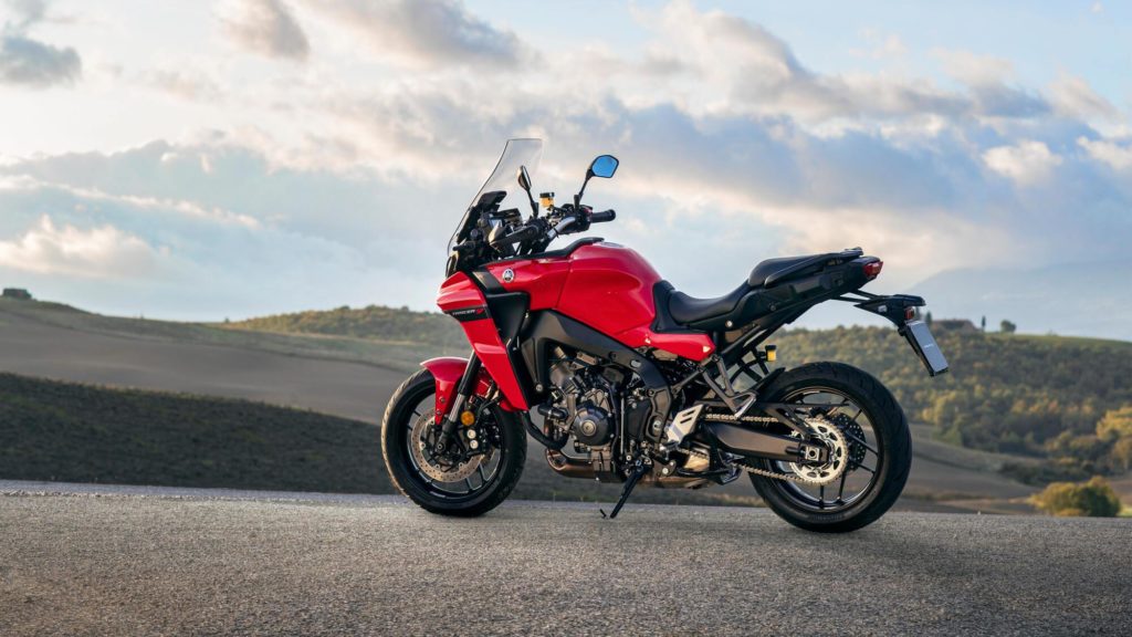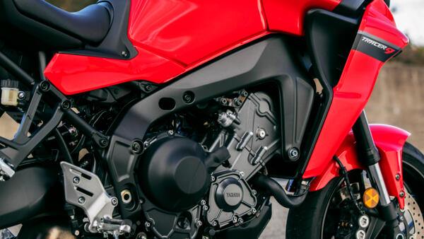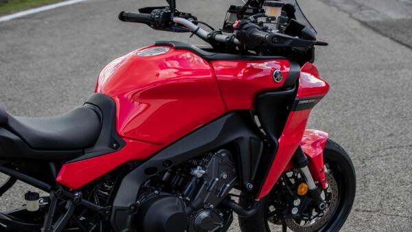 The Tracer 9 comes in two paint schemes Tech Kamo Gray, and Redline Red.