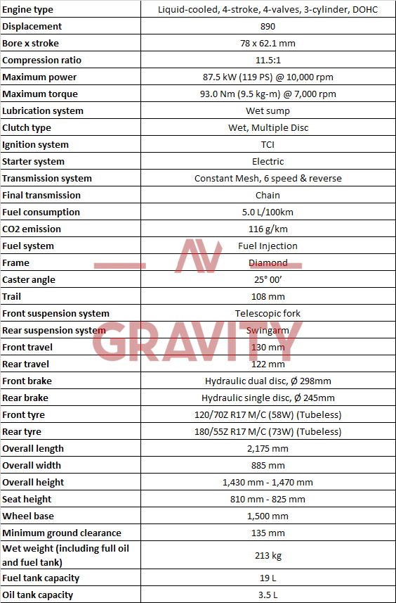 In the new model, the displacement goes up by good 42cc from 847cc to 889cc.