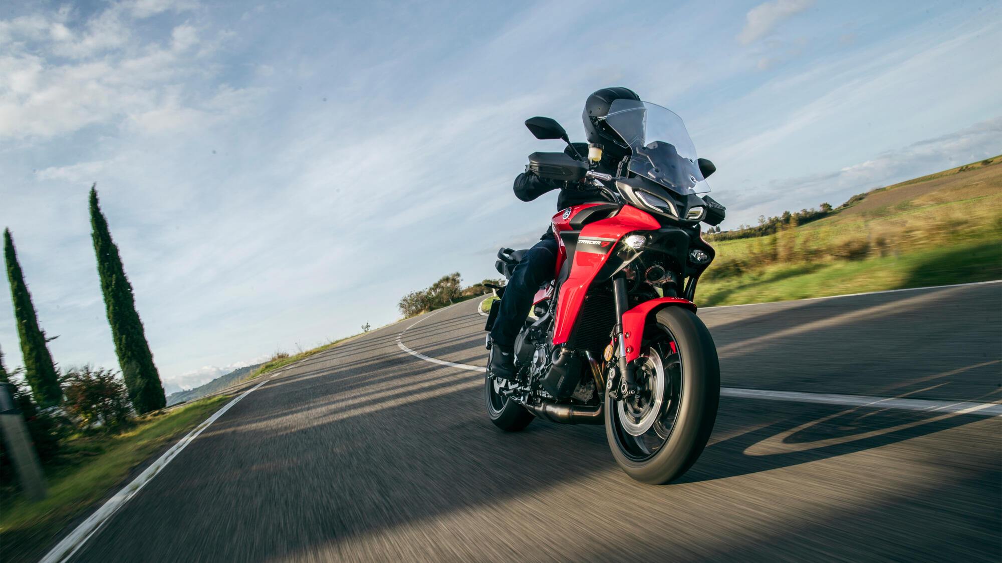The Tracer 9 comes in two paint schemes Tech Kamo Gray, and Redline Red.