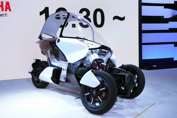 The urban three-legged mobility that we were able to see in Tokyo Motor Show gets two wheels in front and one at the rear.