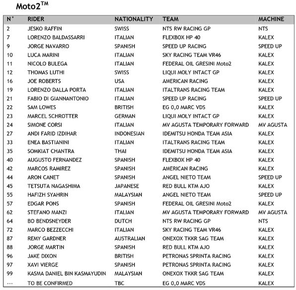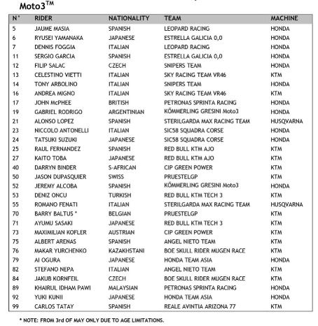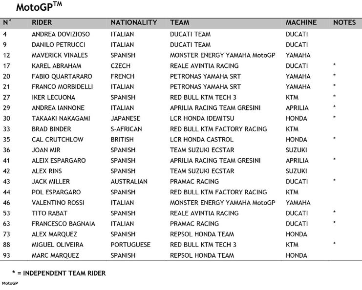 FIM has published its 2020 list of riders who will be part of the coming season for all its three formats.MotoGP, Moto2 and Moto 3.