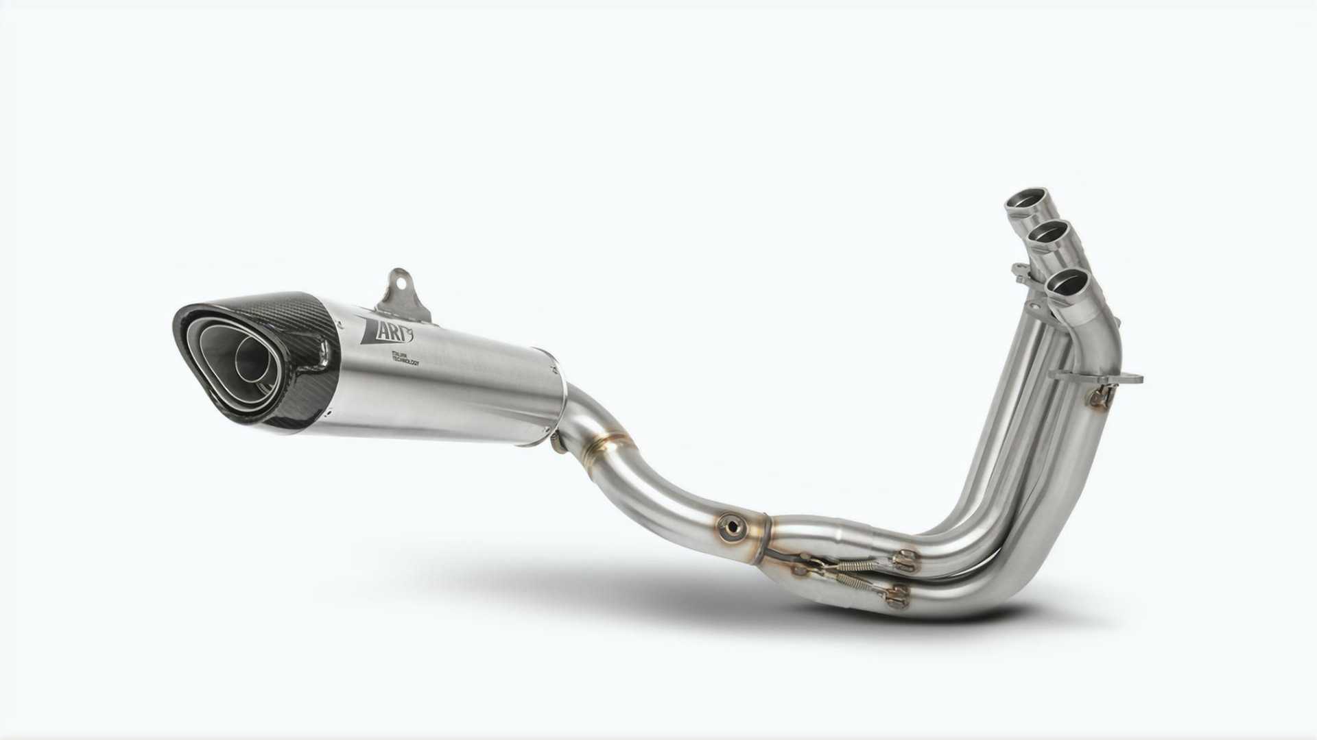 The new Zard exhaust for the Triumph Trident is a 3-1 system that features a removable dB killer. At 117 decibels, the original exhaust was quite loud.