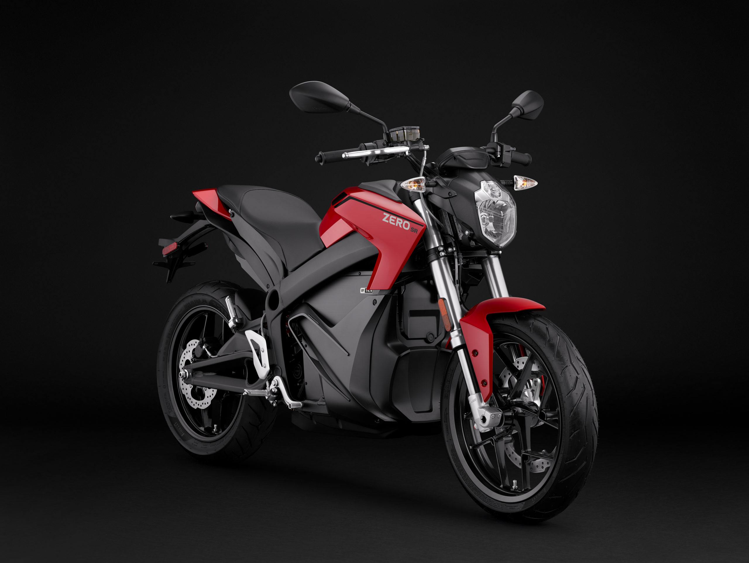 The SR, the original Zero hotrod street bike capable of up to 223 miles of riding with 116 ft-lbs of torque. Will be equipped with a 14.4 kWh power pack and available with new red and black colourway for a price of $15,495.