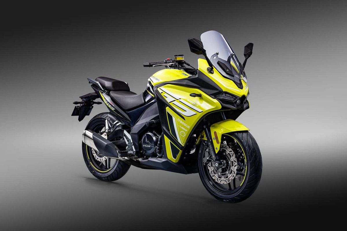 The Cyclone RG3 comes powered by a TC400R twin-cylinder, Water-cooled 401cc engine that produces 42.2 bhp at 9500 rpm with a maximum torque of 34 Nm 8000 rpm.